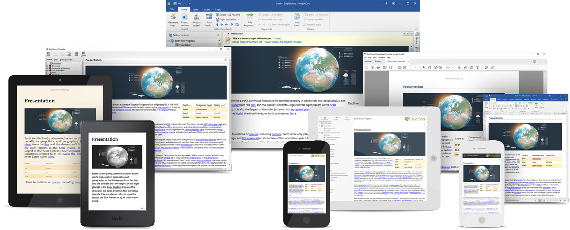HelpNDoc est un outil de création de fichier d'aide facile d'accès capable de générer divers formats de documentation depuis une unique source: des fichiers d'aide HTML et CHM, des manuels PDF et Word, des livres électroniques ePub et Kindle, ainsi que des aides cross-platformes Qt Help et des page de documentation au format iPhone. Oubliez les outils de création d'aide surchargés et incompréhensibles. HelpNDoc fourni les fonctionnalités les plus avancées dans leur forme la plus simple. Créer de fichiers d'aides HTML et CHM est une tâche difficile mais avec HelpNDoc vous vous surprendrez à aimer ça! Produire des manuels Word et PDF, des livres numériques ePub et Kindle ou des aides cross-platformes Qt Help est tout aussi simple et le système de modèles générera de la documentation iPhone en un clin d'oeil. Vous savez comment utiliser l'explorateur Windows et votre traitement de texte préféré ? Alors vous savez déjà comment utiliser HelpNDoc: c'est aussi simple que cela! Ajoutez à ceci de nombreuses fonctions puissantes comme le correcteur orthographique automatique dans un environnement complètement WYSIWYG (ce que vous voyez est ce que vous obtenez), un système de modèles avancé, un système de bibliothèque intégré, et vous commencez à entrevoir à quel point la création de votre prochain fichier d'aide sera simple et rapide pour un résultat des plus professionnel.